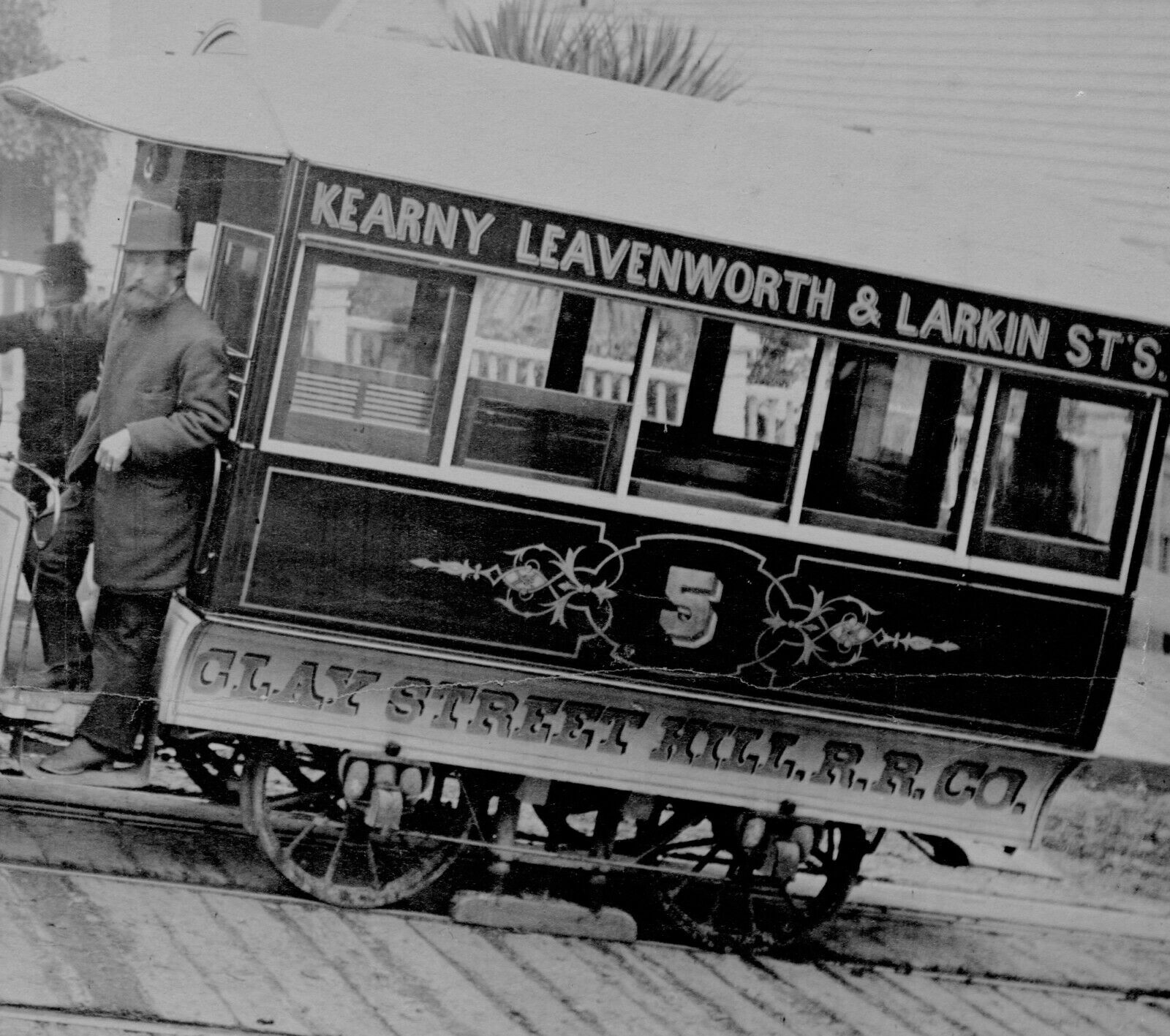 Clay Street Hill Railroad Company #5. Kearny - Leavenworth & Larkin Streets. San Francisco, California. 1890's