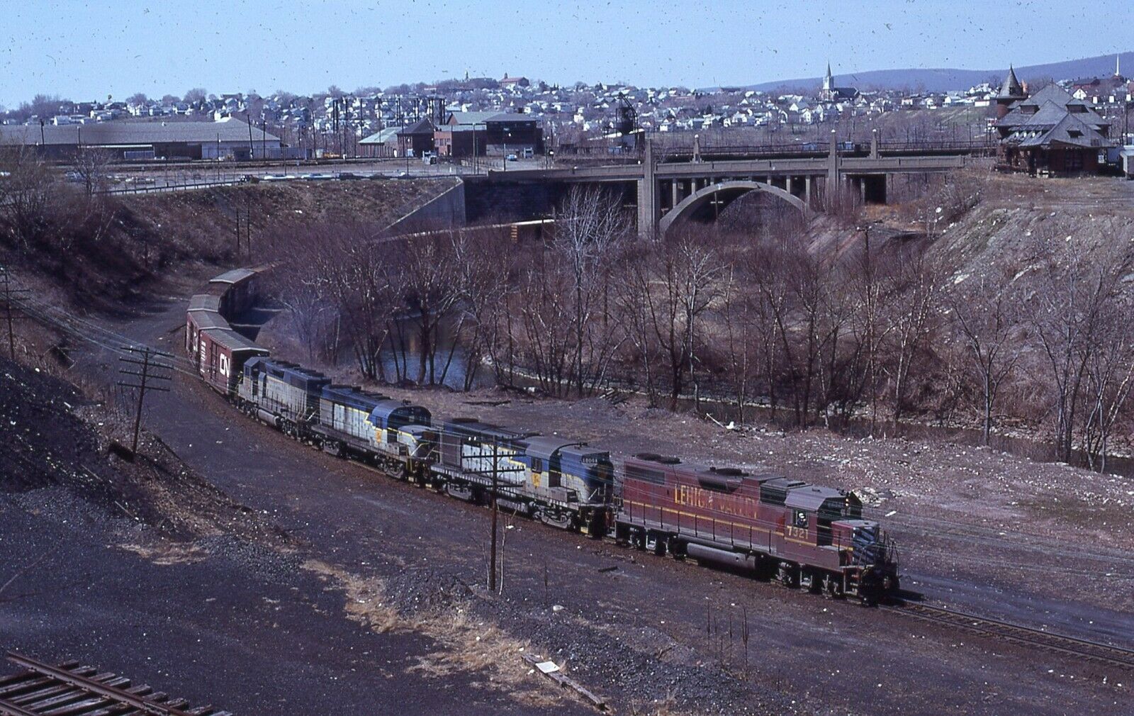 Lehigh Valley EMD number 7321 with a trio of D&H Power lead freight at Scranton, PA. Taken - 04/19/1980.