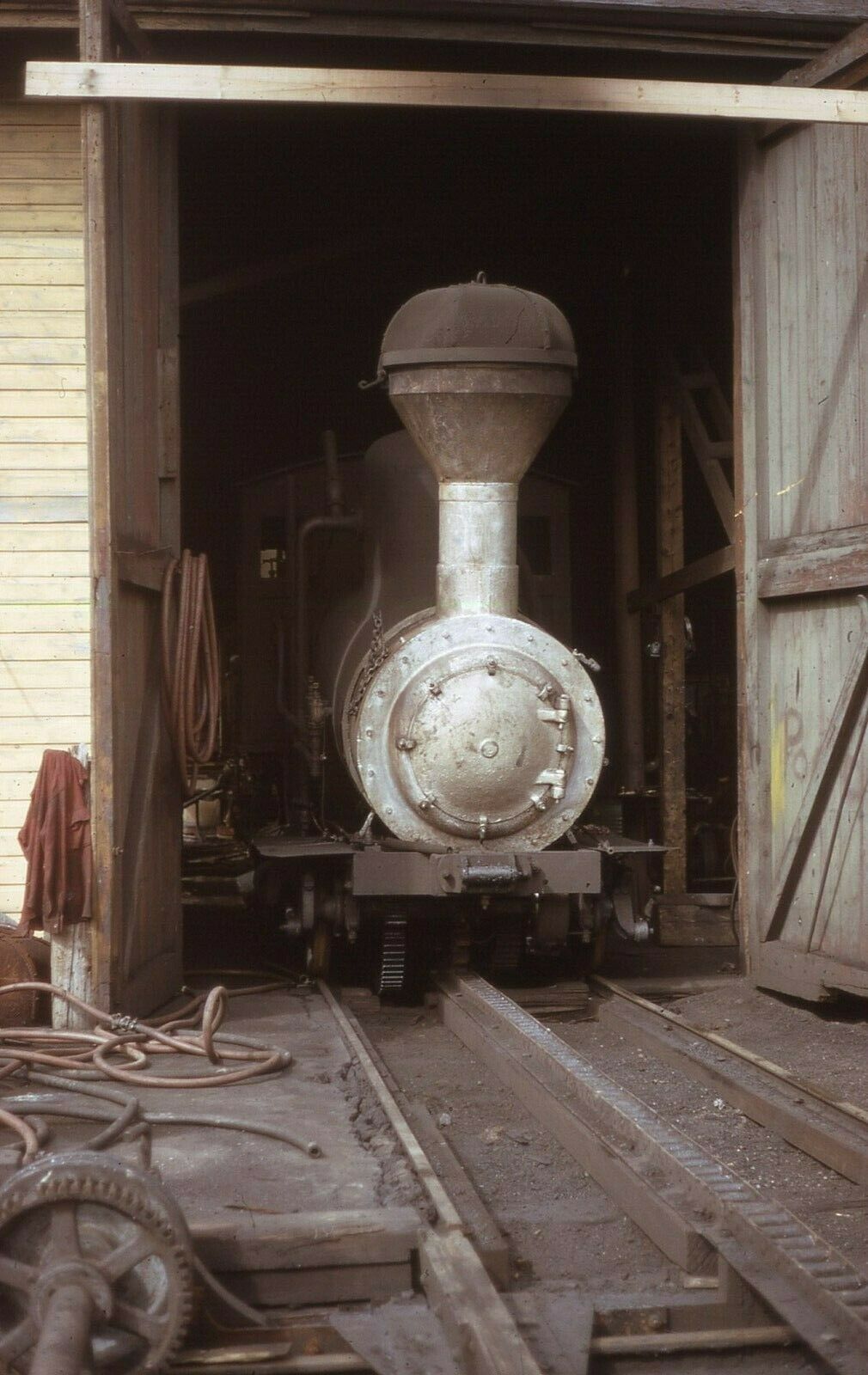 Mount Washington Cog Railway Little Steamer sits inside at Mt Washington, NH. Processed - 07/1973.