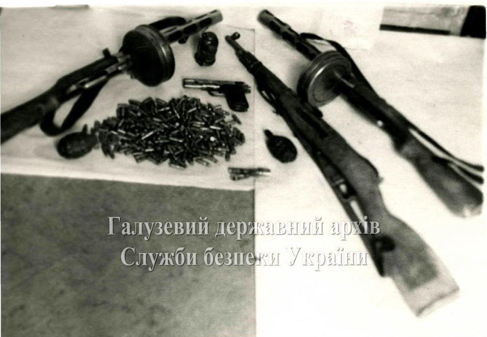 Зброя та набої, вилучені співробітниками МҐБ 1.01.1951 р. у бункері Тишківського Степана “Волиняка”.