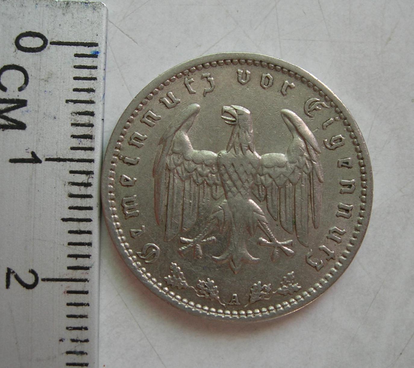 1 рейхсмарка 1937 года в районе 400 RUR http://www.muenzauktion.info/auction/item.php5?id=1946817&sort=mainPage&lines=75&lang=de или http://www.ma-shops.com/gaebler/item.php5?id=3541&lang=ru Как видите, монетный двор "A" дешевле. Как то так...