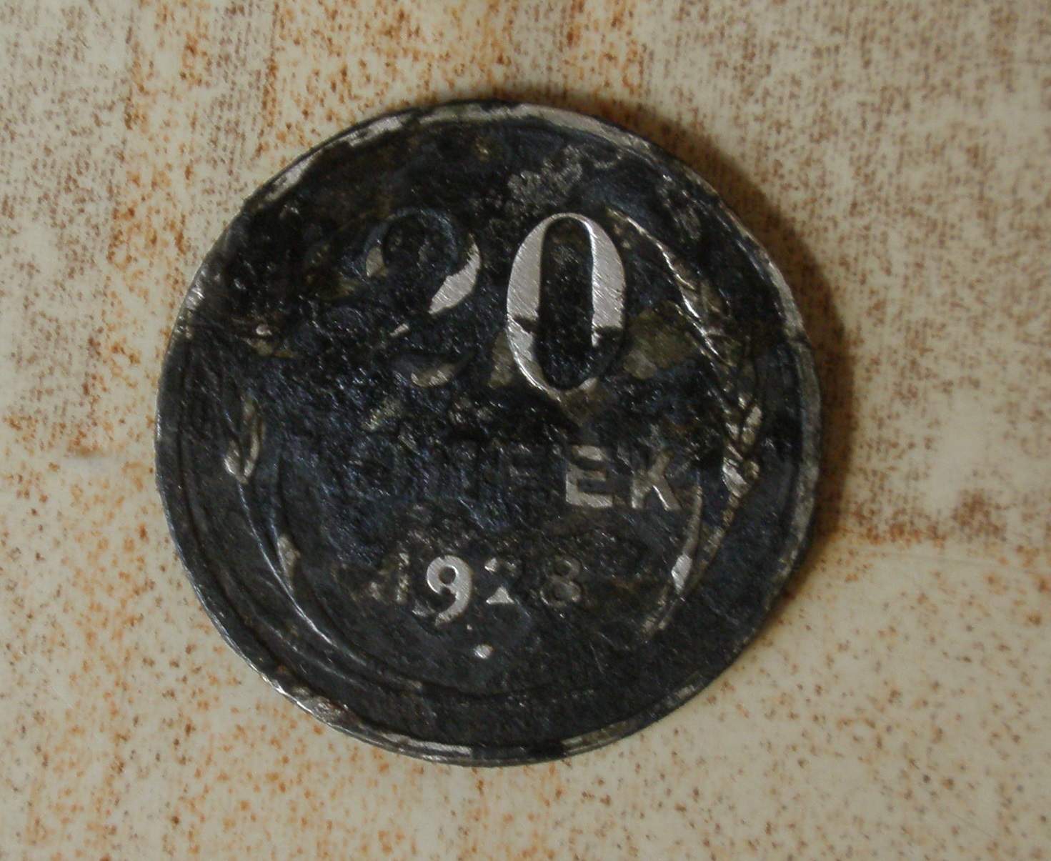 Вона "убита" в хлам..Це вже не монета- какалік..Там нівіть рік визначити проблемно.. А сприяли цьому 500 проба срібла і агресивна середовище ,в якому вона весь цей час знаходилась...