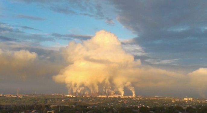 В Днепропетровске похожие облака зависают над коксохимическми заводом в Ленинском районе.Сегодня выходил на работу -на горизонте висит облако и в воздухе витает неповторимый запах.