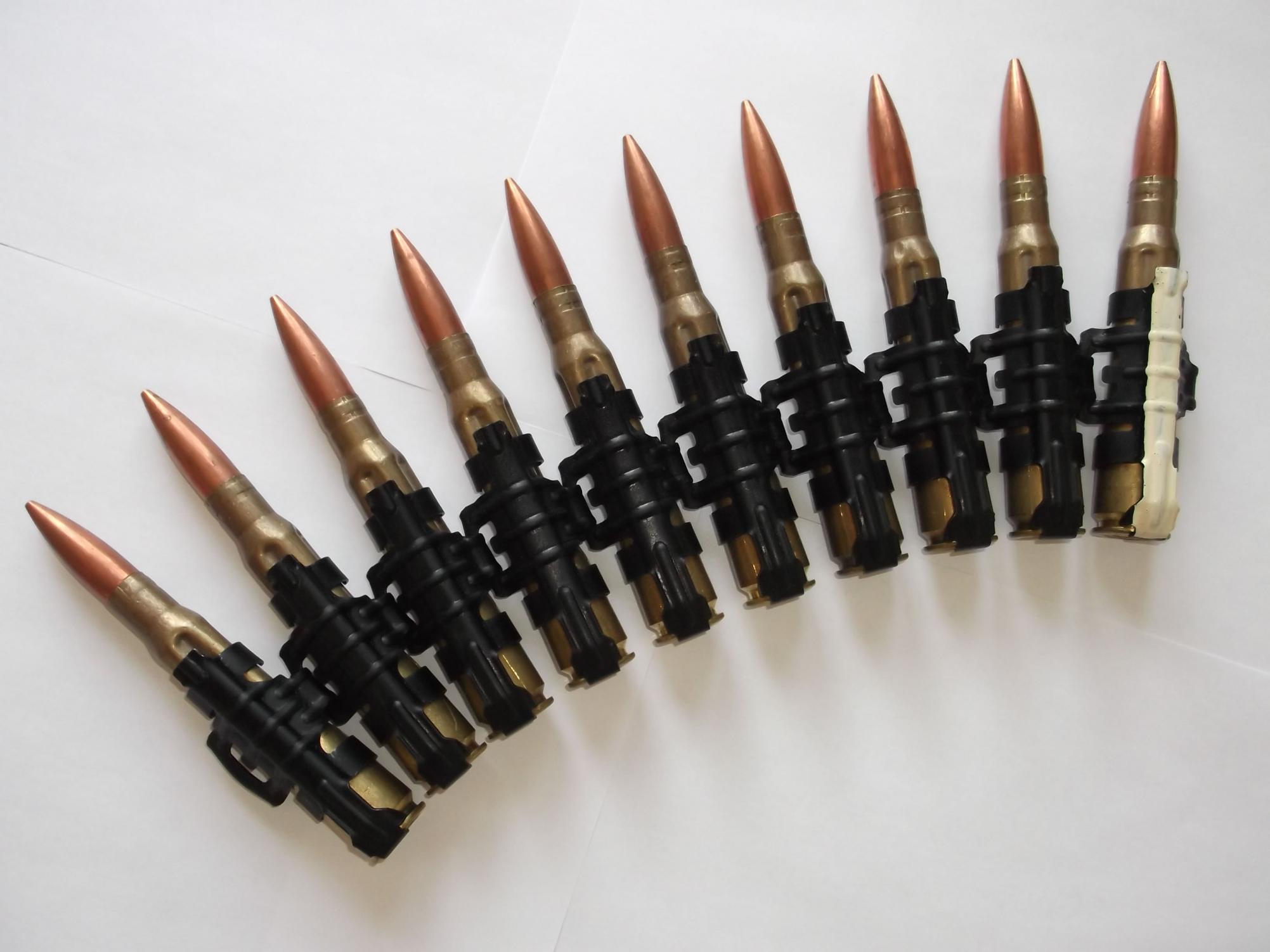 Рассыпная лента к пулемёту НСВ, каждое 10-е звено окрашено в белый цвет.