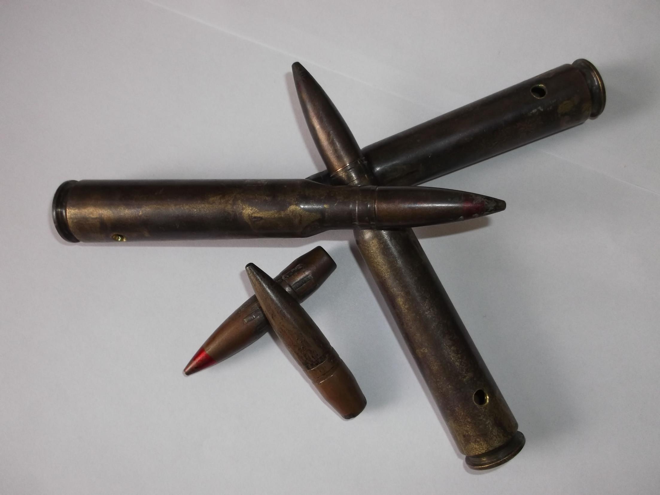 справа: гильза 12,7х108 которая была снаряжена пулей Б-32