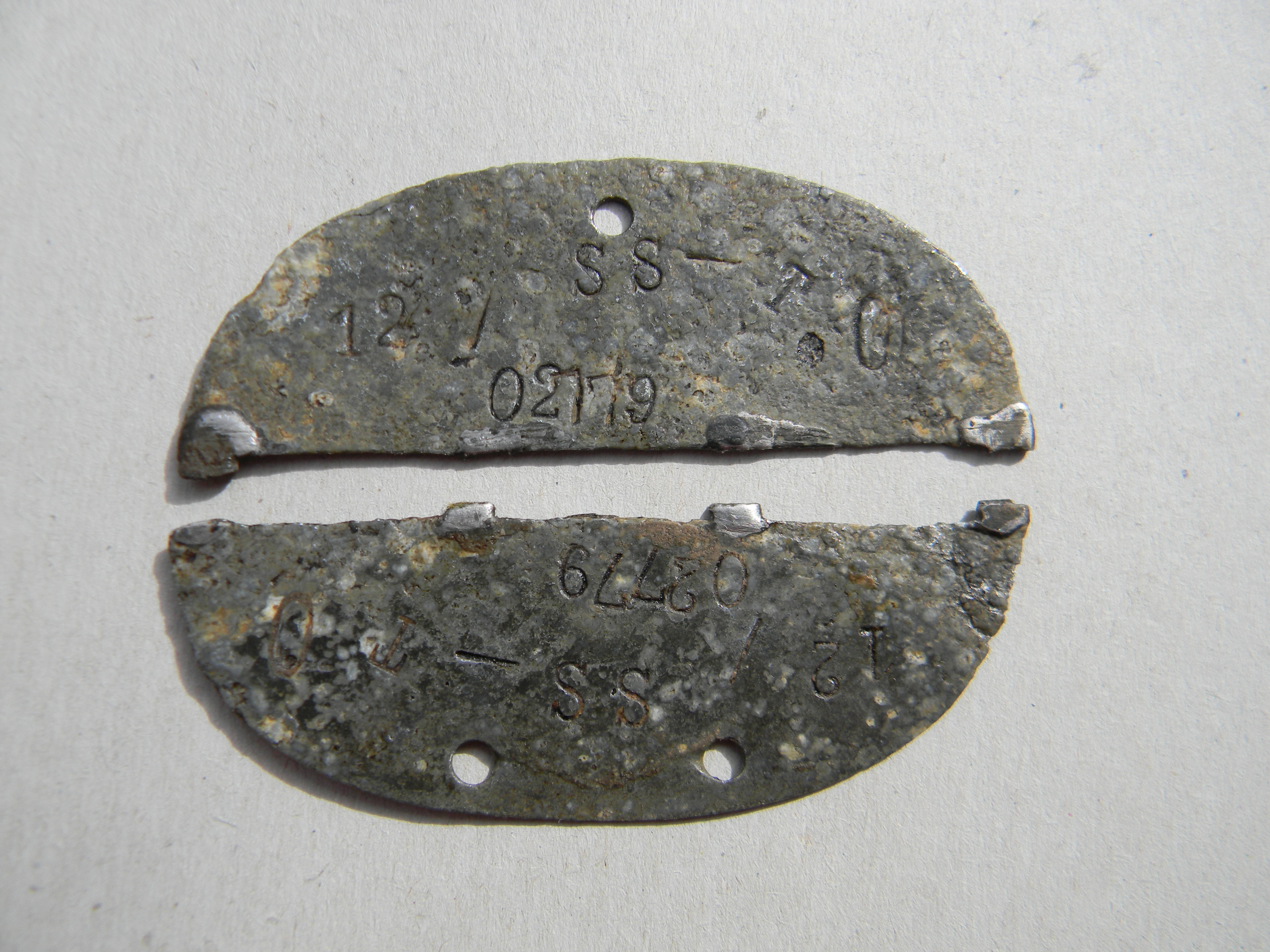 Доброго дня, камрад! Не знаю, что скажут другие эксперты, но как по мне, это SS-Totenkopf Standarte 12. Почему то отсутствует набивка STAND. Если это так, тогда Вы нашли большую редкость. В моём архиве есть только одно фото жетона этого подразделения: SS-Totenkopf Standarte 12 было расформлено в августе 1940го года. Очевидно солдат очень дорожил этим жетоном, по скольку паял сломанные половинки. З повагою, Валдіс! Слава Україні!