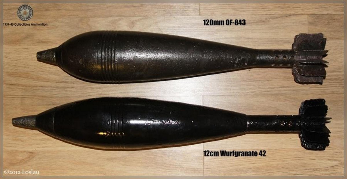 Ну 120-мм немцы скажем так более "бочкообразны", а 120-мм советы - "каплеобразны". И у немца ярко выраженная привинтная головка. Фото №1. ........................