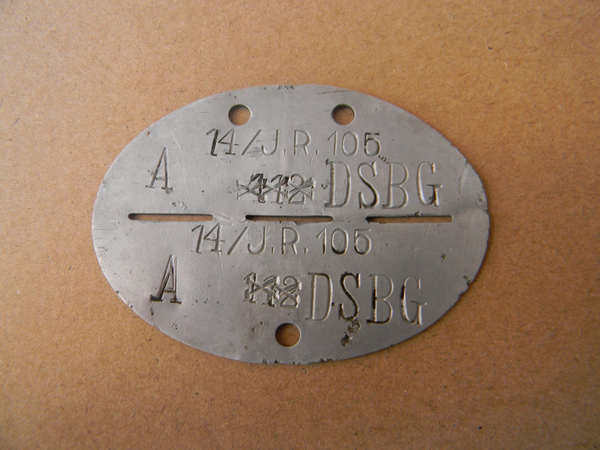 https://reibert.info/threads/12-iii-j-r-186.1277864/ Буквы такие же, как на вашем, а вот цифры другие. Номер на жетоне забит. Есть идея, что запороли и использовали как пробник. BG можно сказать О группе крови. А DS может инициалы. Так ,неуставное что то набили.