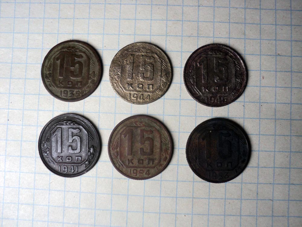 Дореформенные монеты; 15 копеек (6шт)- 1935,41,44,46,53,54гг. 35грн+5грн(укрпочта)