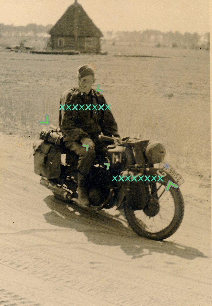 Унтерштурмфюрер 2-ой танковой дивизии СС «Дас Райх» на мотоцикле DKW NZ 350. Восточный фронт, 1943 год.