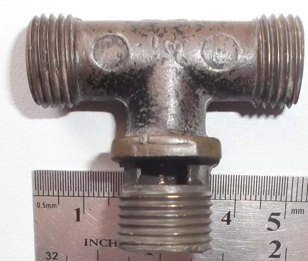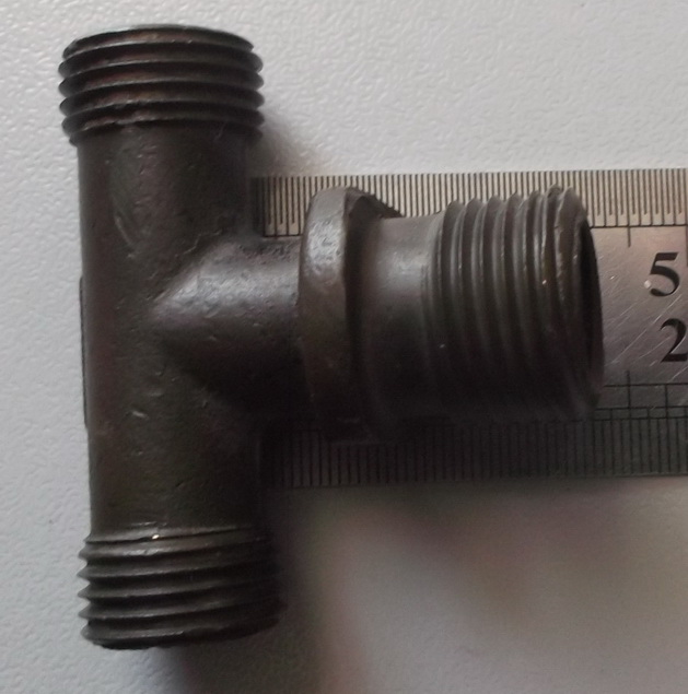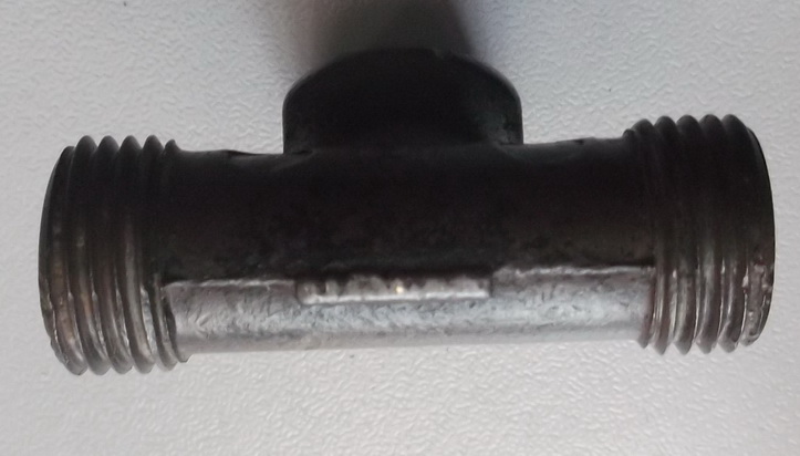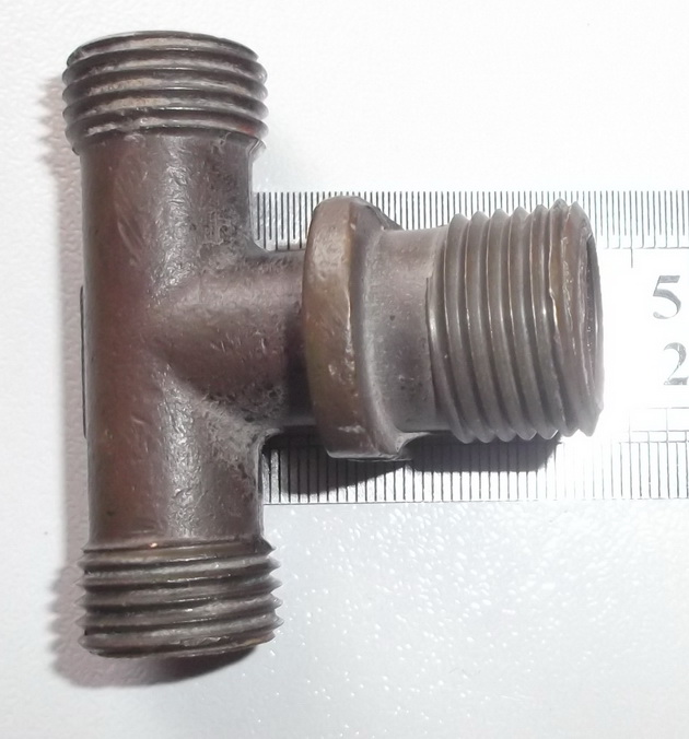 Здравствуйте! Помогите определить детали, копаные летом. Оба из бронзы, на тройнике с торца видна надпись - разобрать не могу. С уважением.