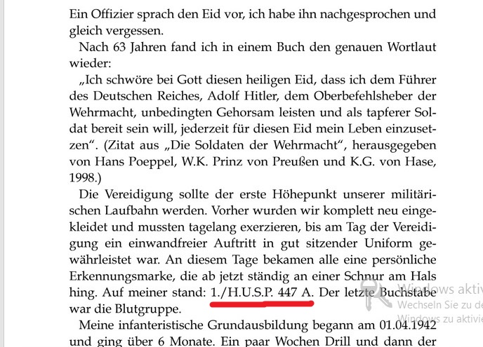 Унтер-офіцерська школа в Потсдамі - без варіантів. Нижче пара сторінок з мемуарів німецького ветерана Герда Чехне, 1925 р. н., який в 15 років вступив до школи початкової підготовки кандидатів в унтер-офіцери в Аннабурзі, а після його закінчення, в квітні 1942 р., був переведений до унтер-офіцерської школи в Потсдамі, де прийняв присягу та отримав жетон з набивкою 1./H. U. S. P. та номером 447. До речі, в ТС жетон має такий самий номер, лише рота інша, так що можна припустити, що він виданий десь в той самий період (при розподілі по ротам і взводам головну роль відігравав критерій зросту).