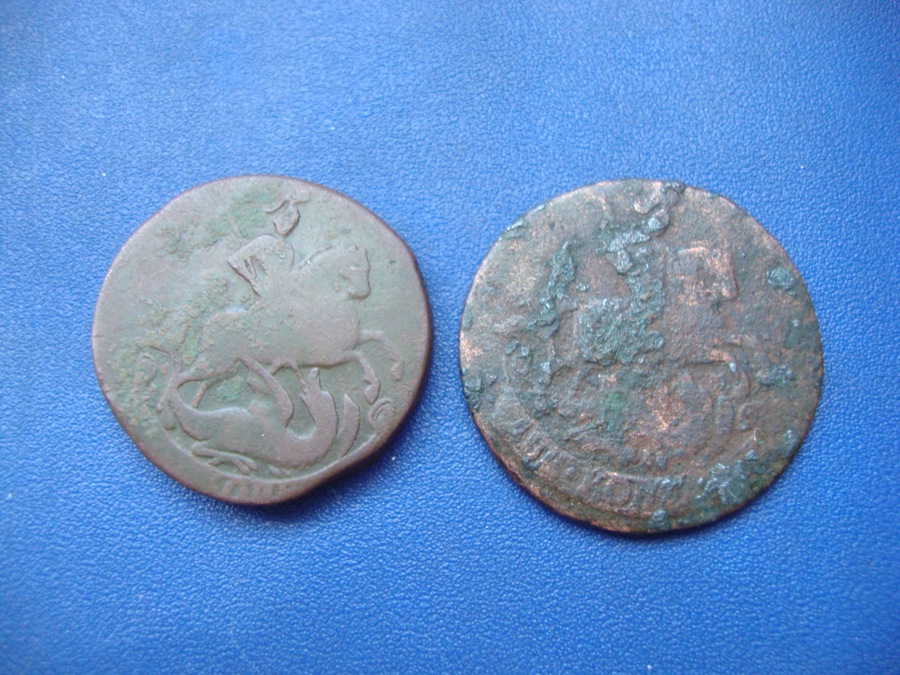 Для сравнения рядом двушка Елизаветы--1757 года--вес 23 грамма