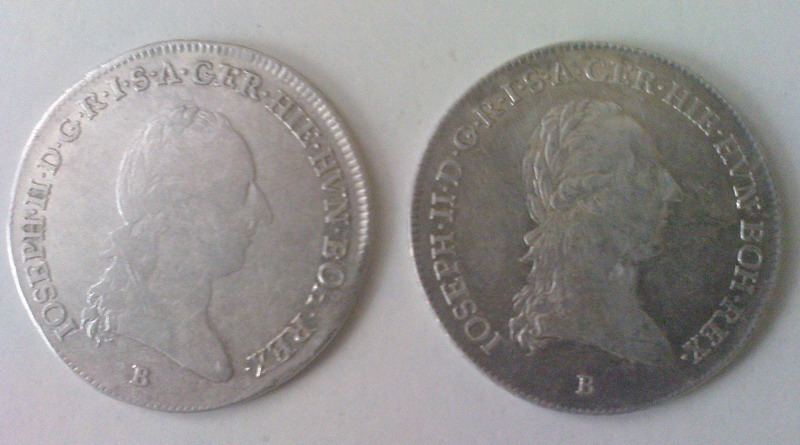 Сегодня вылезли на свет, две серебрянные монеты. Принадлежат к Австрийским Нидерландам, 1/4 коронного талера Иосифа II, монетный двор Кремниц. Диаметр 3см, вес 7 с хвостиком гр. Интересует реальная стоимость . Спасибо.