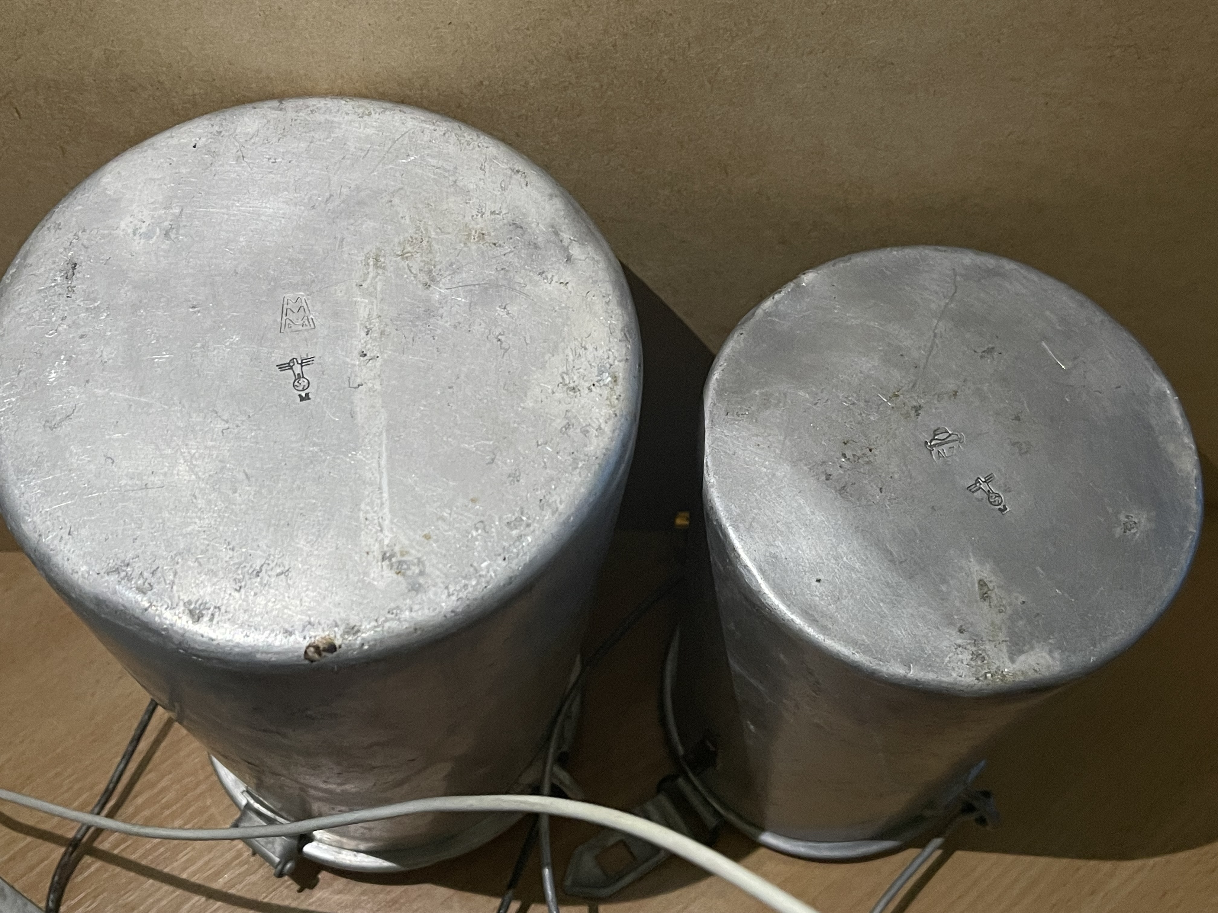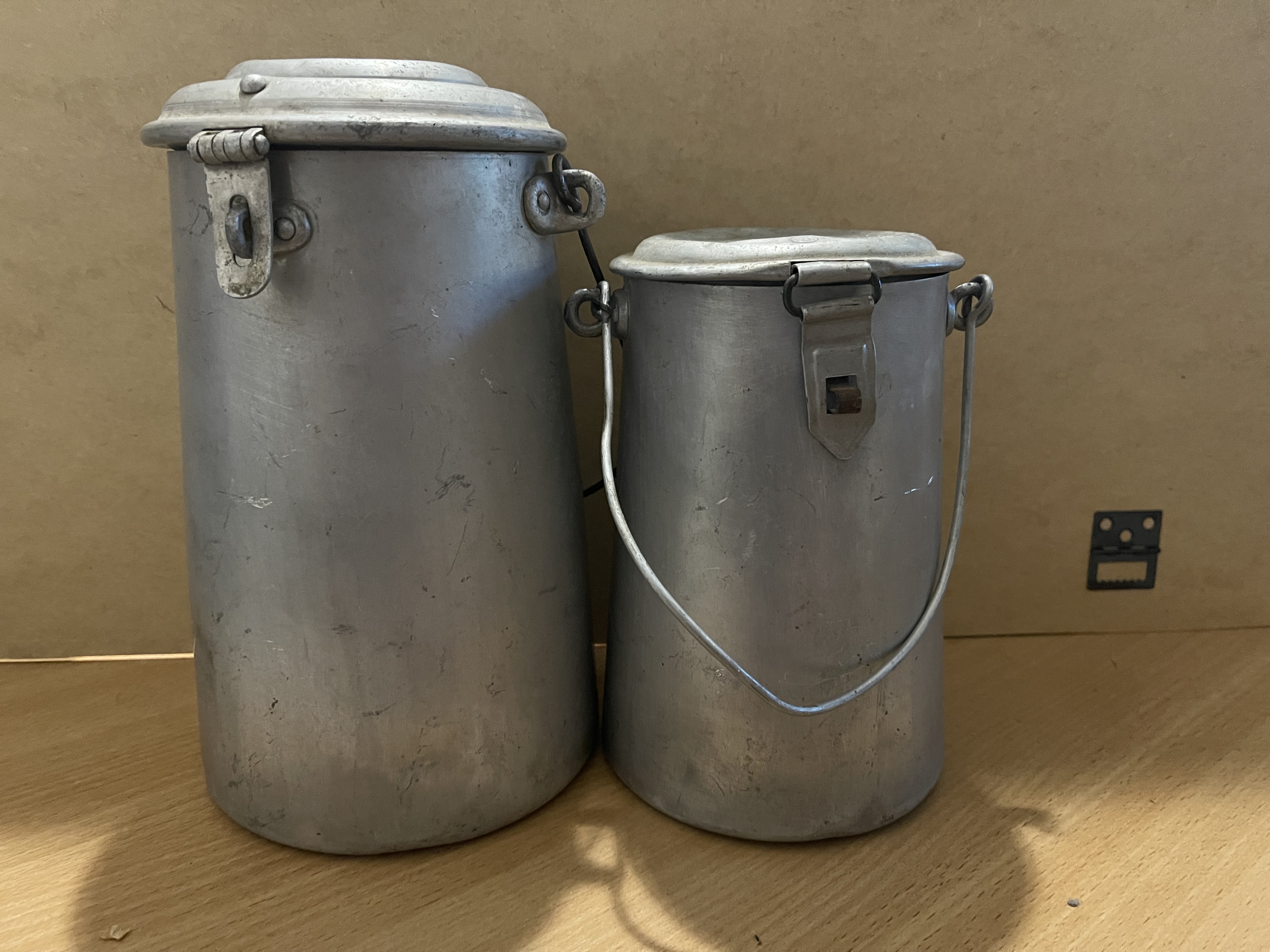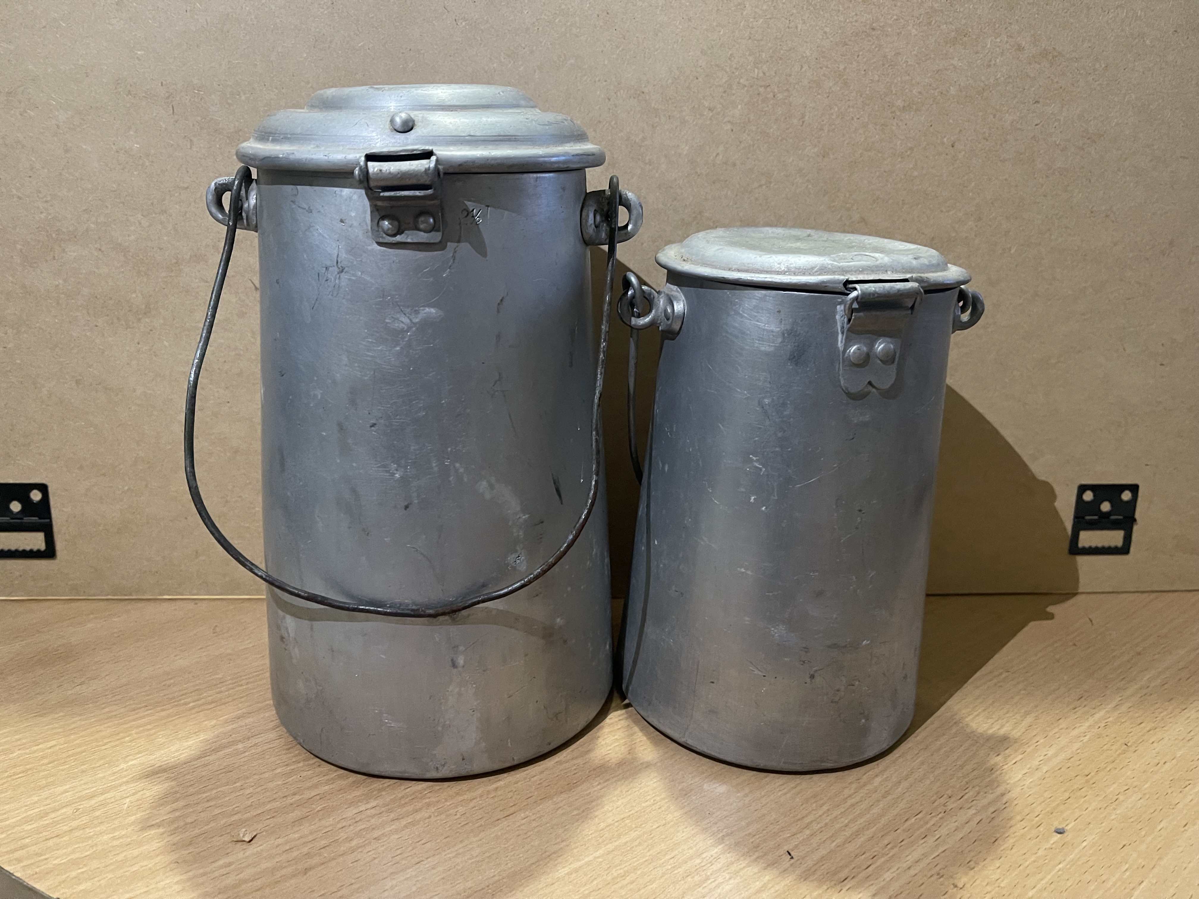 Доброго. Сумнівно використання "сільських" бідонів для парного молока на флоті. З коровами якось не в'яжеться.. Клейма виробників також як не німецькі. І так, ця конструкція бідончиків часто в продажах в Іспанії. https://www.google.com/search?q=lechera de aluminio Ось пара один в одного https://www.todocoleccion.net/antiguedades/2-lecheras-aluminio~x365678061