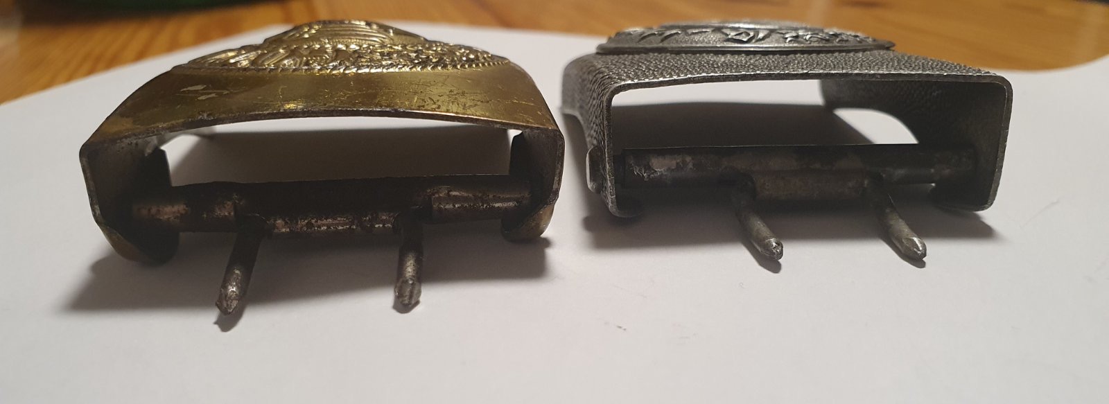 Приветствую. Фотографии, конечно, желают лучшего. Но, все же. Как вам правильно выше отметили, это не пряжки Wehrmacht, а Kriegsmarine. Еще лет 20 назад на западных форумах активно велись дискуссии относительно оригинальности стальных пряг Kriegsmarine. Пряги с клеймом CTD 1941, при этом, были самыми обсуждаемыми. Помимо материала изготовления активно обсуждалось отсутствие Клейма приемки КМ на хлястиках, а также нехарактерная форма ворот по периоду для этого производителя. Так или иначе, чем дальше от войны, тем больше оригиналов разных видов и типов появляется . Сейчас эти пряги у большинства коллекционеров отторжения не вызывают, как раньше. По цене, сейчас Вайце продает такую за 650 уе. Что же касается парадной пряги Police, то в таком состоянии до 100 уе. С уважением, Илья