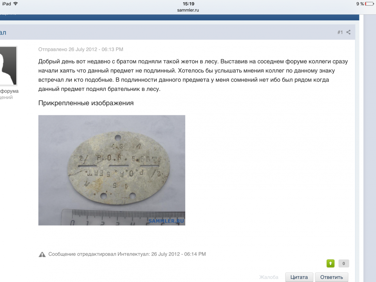 Добрый день.Выкопал в Винницкой обл.в лесу половинку жетона,знаю ещё один экземпляр целого жетона найденного в Черкасской обл.Прошу подск азать специалистов по данным жетонам.С ув.