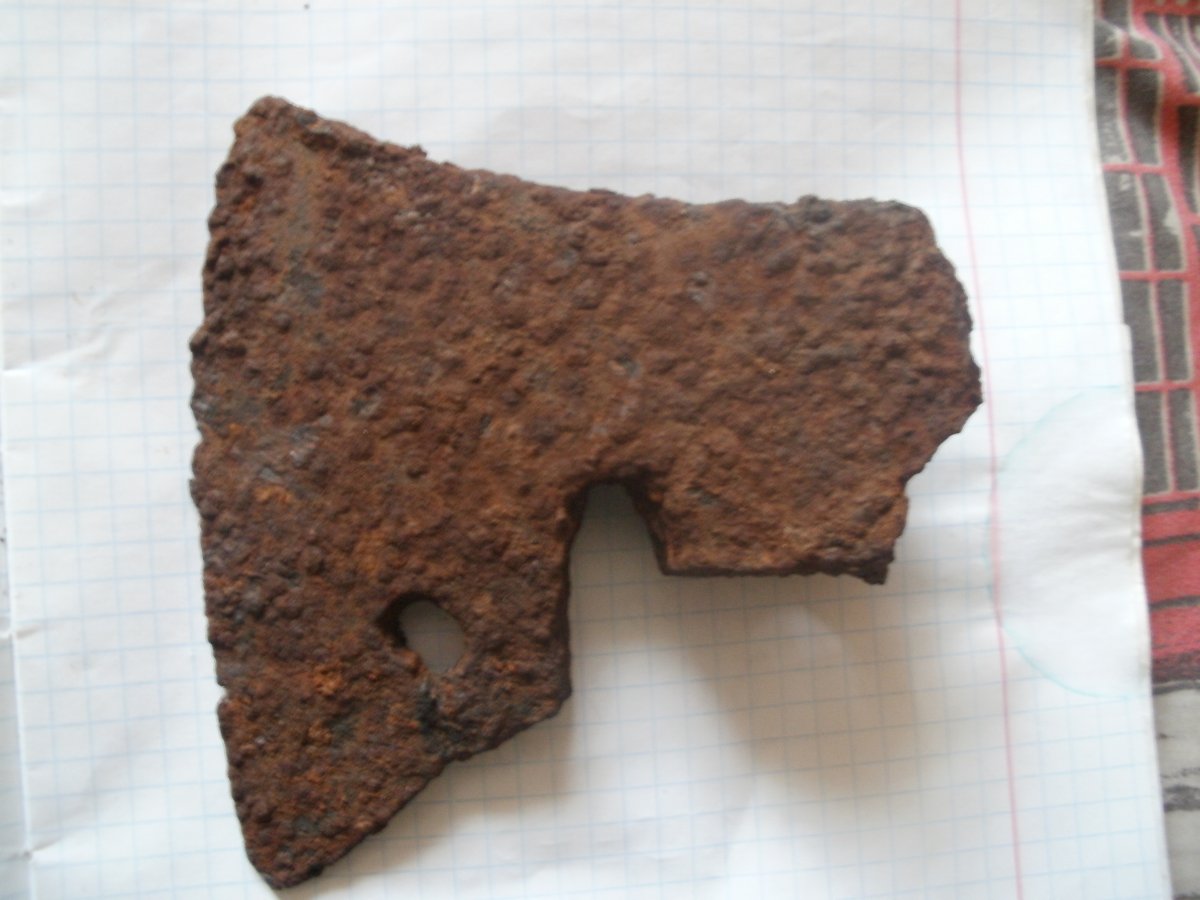 Приветствую. Вот на днях произошёл интересный случай. В конце одного из походов найден кусок свинца как выяснилось это амулет-топорик КР (сейчас выставлен на аукцион). Через несколько дней я пошёл снова проверить это место (находки Киевской Руси тут редкость) ну и в метрах 10-20 от первой находки выкапываеться уже настоящий топорик. Вес его 520 грамм, присутствует отверстие, обух повреждён. Хотелось бы узнать приблизительную датировку топора, его тип и чи связана вторая находка с первой? С ув.