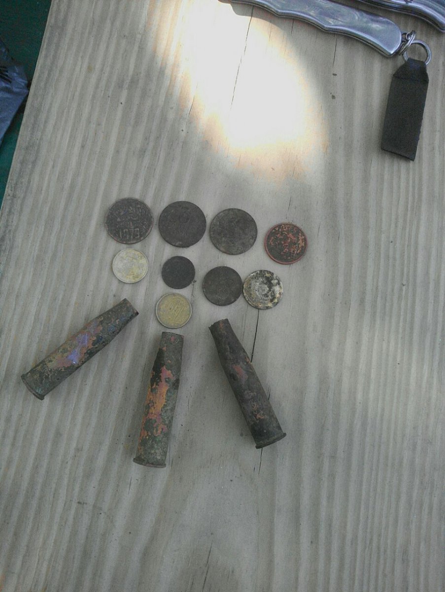 Сегодня прогулялся у соседа, не густо но все же кое что есть. интересно клеймо на уламку гильзы мосина, ранее такого не встречал
