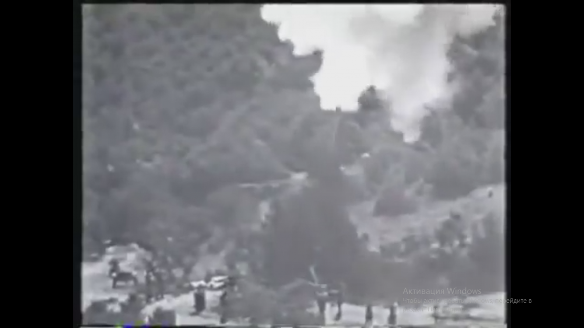 А вот с позиции под горой стреляло вообще штучное орудие , его даже немцы в кинохронику о Доре по ошибке вставили. Не удивительно в начале войны было всего одно такое орудие , а до конца войны их построили аж 8 штук.Откат орудия был двойным как и у К-3 не удивительно что и я его под массетями принял за К-3. На самом же деле это супер гаубица М-1. 35,5 cm Haubitze M1
