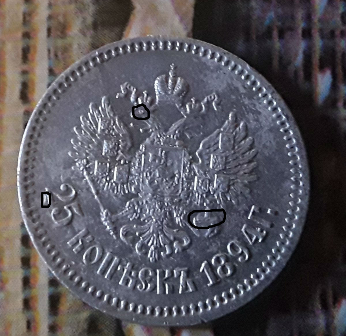Так 125 лет прошло, вот глаз и вылез :D, может игра света, остальное может от ударов. В любом случае, точно сказать можно только с нормальных фото, гурта и на весах