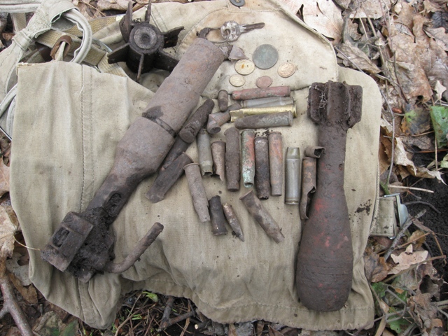 Выехал сегодня в один из яров там где стояли Немецкие артелеристы .Погода была хорошая,но копано было везде,но кое что попалось.50мм мина и наствольный гранатомёт после мытья на фото.