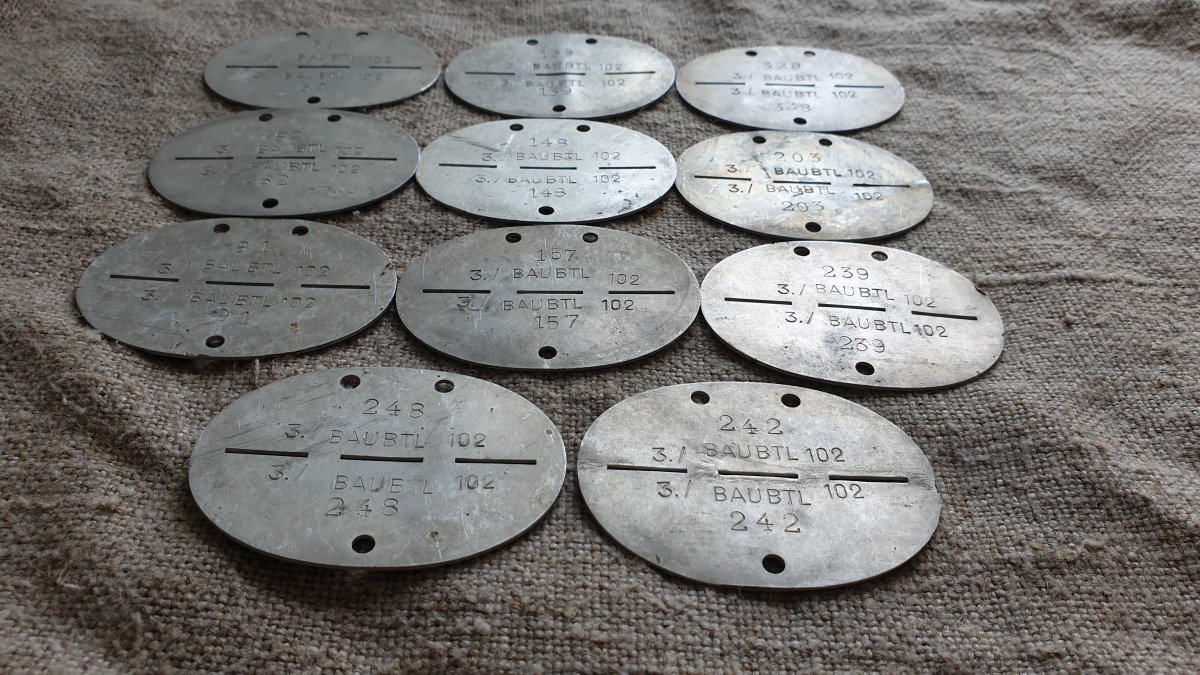 По расшифровке данных жетонов всё ясно - это 3-я рота 102-го строительного батальона.