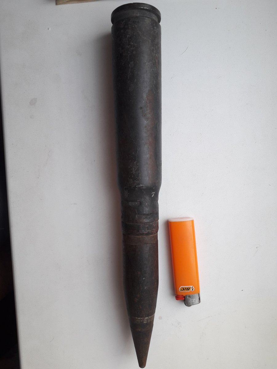 Доброго часу доби, шановні! Попав у руки такий девайс. Чи вірно я його визначив? Капсюль пробитий, на снаряді видніється біла полоса. Як потрясти, то в гільзі є порох чи інша сипуча речовина. На снаряді є маркування вроді "ПП щось незрозуміле-34 АЕ" Дякую всім наперед!