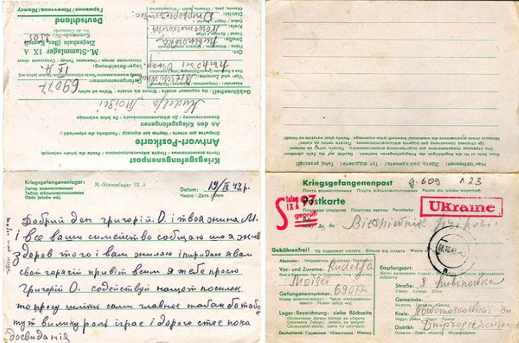 Такое письмо по теме. Почтовая карточка. Была послана военнопленным Моисеем Куделей на Родину - в с.Любимовка, Новомосковкого района, Днепропетровской области.