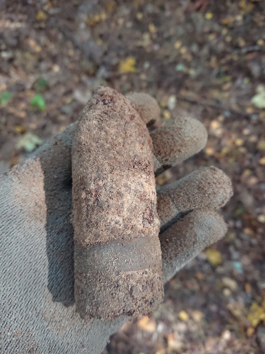 Нашлась сегодня небольшая приятность на битом в ошметки месте...Если не ошибаюсь 37 мм немец, в макетом уже состоянии, нет ни взрывателя ни вв.. Поэтому забрал.. На безрыбье и рак рыба...
