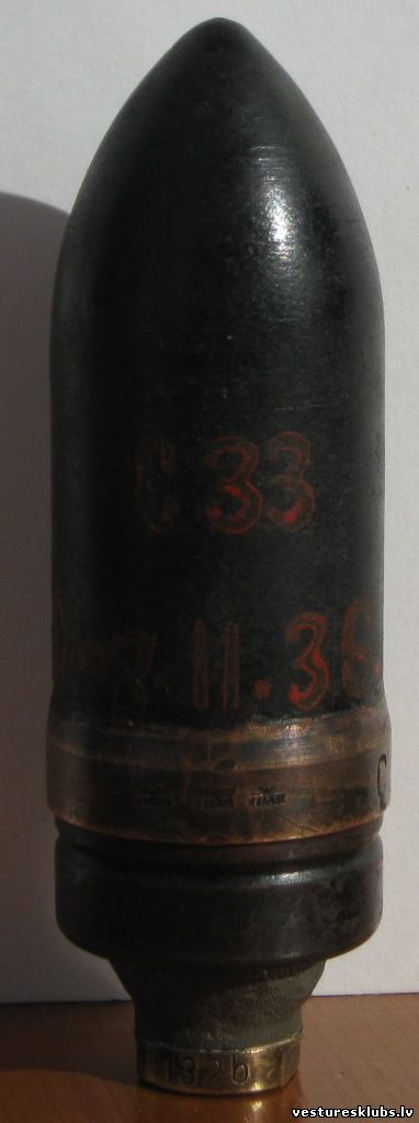 Снизу дыра ..) Взрывателя нет... На пояске имеется две "курицы", так что принадлежность установлена...)