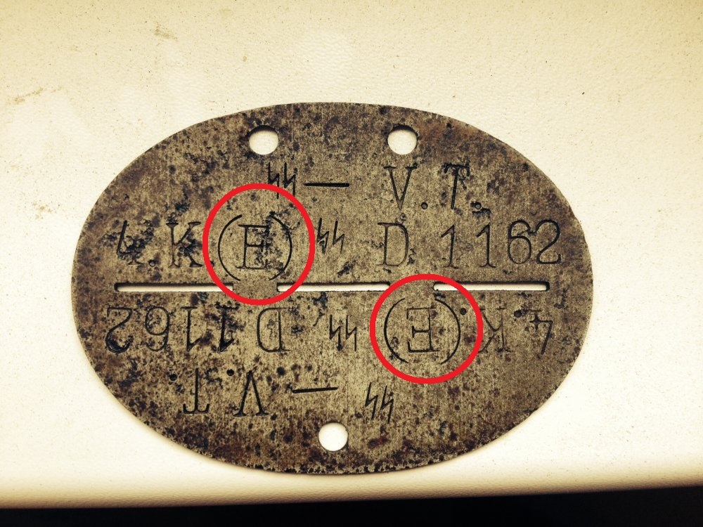 Вы Вы сравнили два одинаковых фуфловых жетона(на мой взгляд фуфловых).Я только не понял зачем.. Привязывать форму жетона к роду войск это вообще бред идиота,простите..Не знаю кто это придумал..Я могу Вам показать мешок жетонов сс как с одной формой,так и с другой. Ну и третье.Есть жетоны с номерами в этом диапазоне и этой роты оригинальные на 100%.И они имеют совершенно другой шрифт.