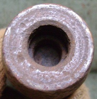 Ну, это трудно сказать: может быть просто ржавые внутренние стенки снаряда на фото так получились...