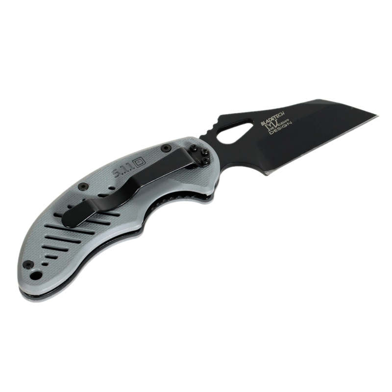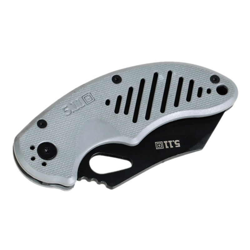Нержавеющее черненое лезвие, пластиковая с выемками ручка удобно ложащаяся в руку, клипса на второй стороне для фиксации сложенного ножа на ремне. Внешние размеры раскрытого ножа - 17 х 3,5 х 1 см.