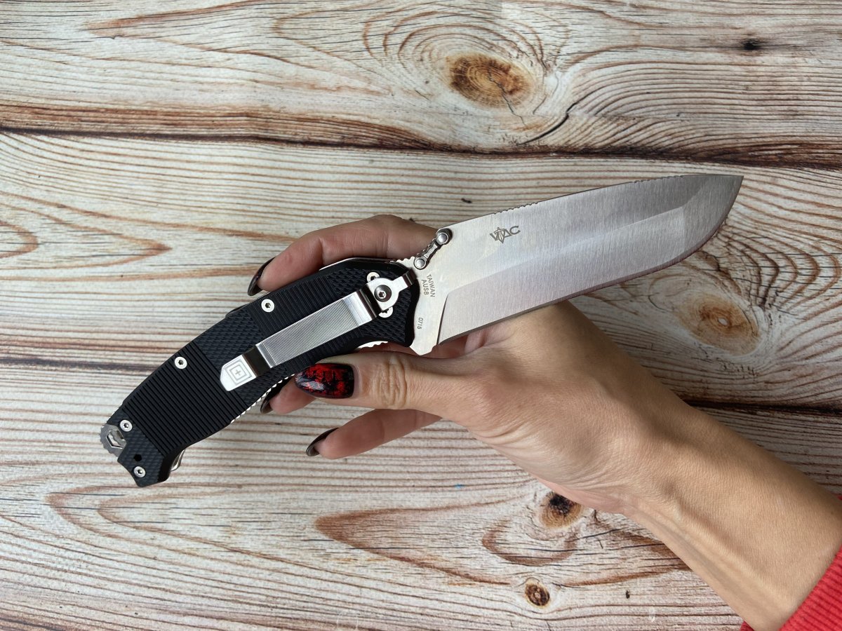 «Разработанный в сотрудничестве с Кайлом Лэмбом, высококвалифицированным ветераном специальных операций армии США, востребованным инструктором по стрельбе и тактике и опытным охотником, новый Game Stalker Folder Blade 5.11® обеспечивает выдающуюся универсальность как для любителей активного отдыха, так и для тактического использования.» (с)