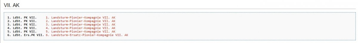 Отдельные саперные роты ландштурма могли входить в корпус...см. пример... Ландштурм имел корпусное подчинение...