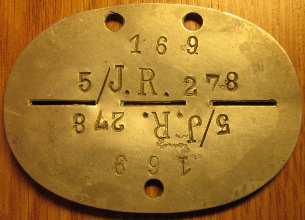 поиск уже не работает_? простейший жетон. 5 рота 278 пехотного полка. Infanterie-Regiment 278 169 номер жетона. http://www.lexikon-der-wehrmacht.de/Gliederungen/Infanterieregimenter/IR278.htm