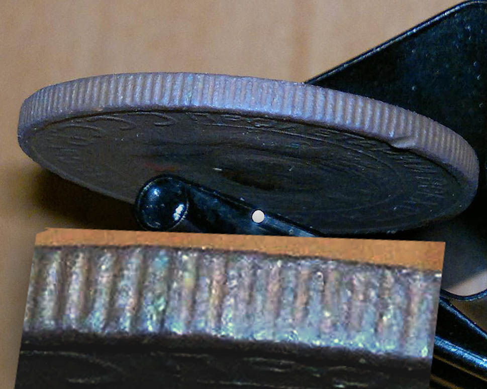 Я не специалист по советским монетам, но имея в советские времена опыт работы в инструментально-механическом цехе на большом заводе сохранил некоторые знания по токарному делу. В частности, насечки на монете автора темы нанесены методом накатки специальным инструментом "державкой". Об этом явно свидетельствует завальцовка металла вдоль выпуклых фрагментов (рёбер) насечки. При чеканке монеты в гуртильном кольце появление подобной завальцовки техноглогически невозможно в силу иной физики механического воздействия на заготовку.