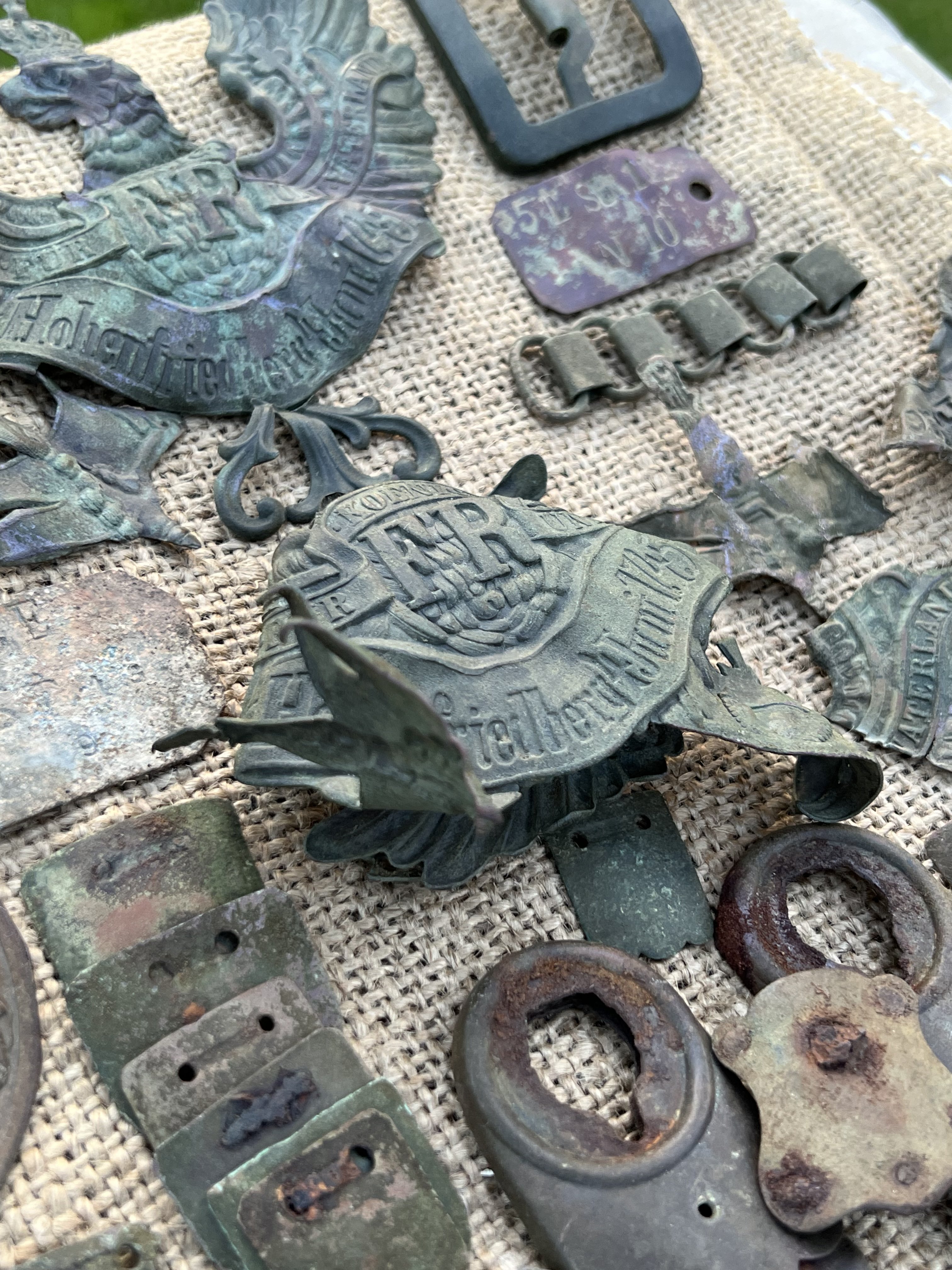 2- го Кірасирського Кавалерійського Полку, більш менш цілих два, третій Нажаль по деталях. Також на місці було знайдено дії пряжки (які схожі на відповідні пряжки форми даного полку), накладка на патронну сумку та частини до двох Пікелів. Дуже цікавий набір як на мене та історія полку ще цікавіша.