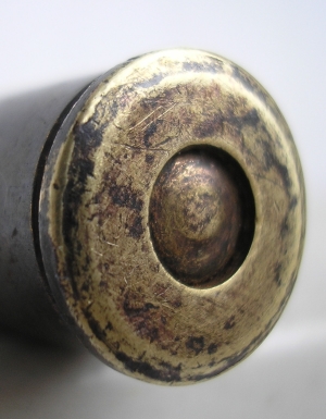 Капсюль латунный выпуклый. Края капсюльного колпачка упираются в дно капсюльного гнезда без зазора.