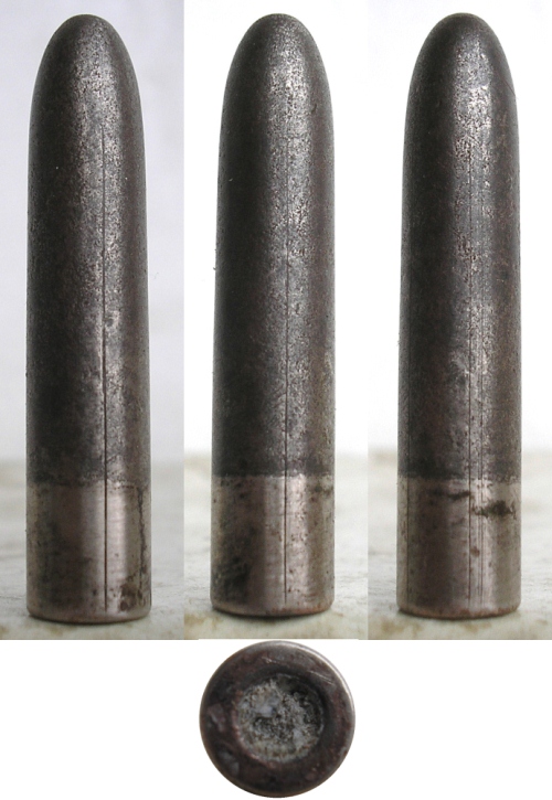 На ведущей поверхности пуля имеет 4 ярко выраженных продольных царапины. На вершине пули заметен кольцевой след от толкателя.