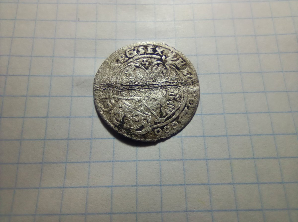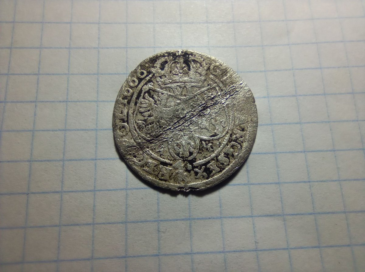 Вітаю. На полі знайшов таку монету. По каталогу 6 грошей, дата 1666. Стан, звісно, не ідеальний, вдарена плугом посередині, на цьому місці є слід. Але помітив, що одна сторона обернута відносно іншої приблизно на 180 градусів. Це норма? Діаметр 25 мм. І прошу вказати ціну, якщо монета її має. Наперед дякую. З повагою.
