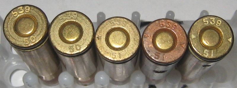 Изначально данные патроны имели армейские гильзы (клейма которые встречал я 711 92 и 95, а так же 539 92 (фото макета выставлял в данной теме).