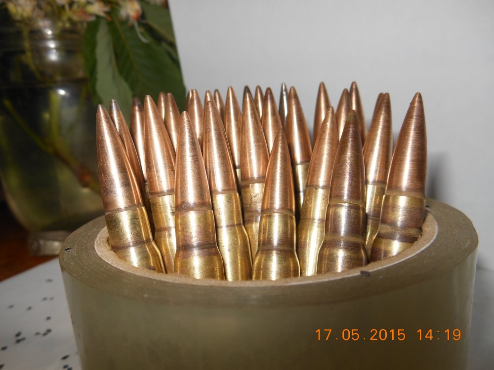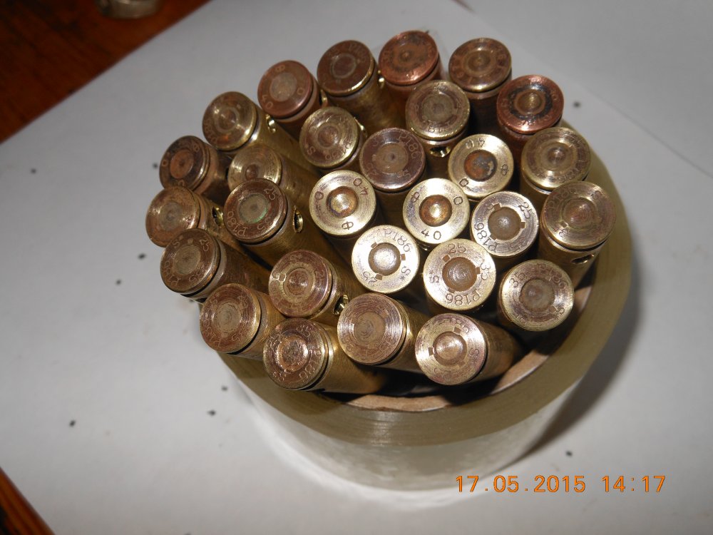 Прошу простить за вмешательство,но мне видится две гильзы из биметалла,остальные латунь,даже клеймо есть S*