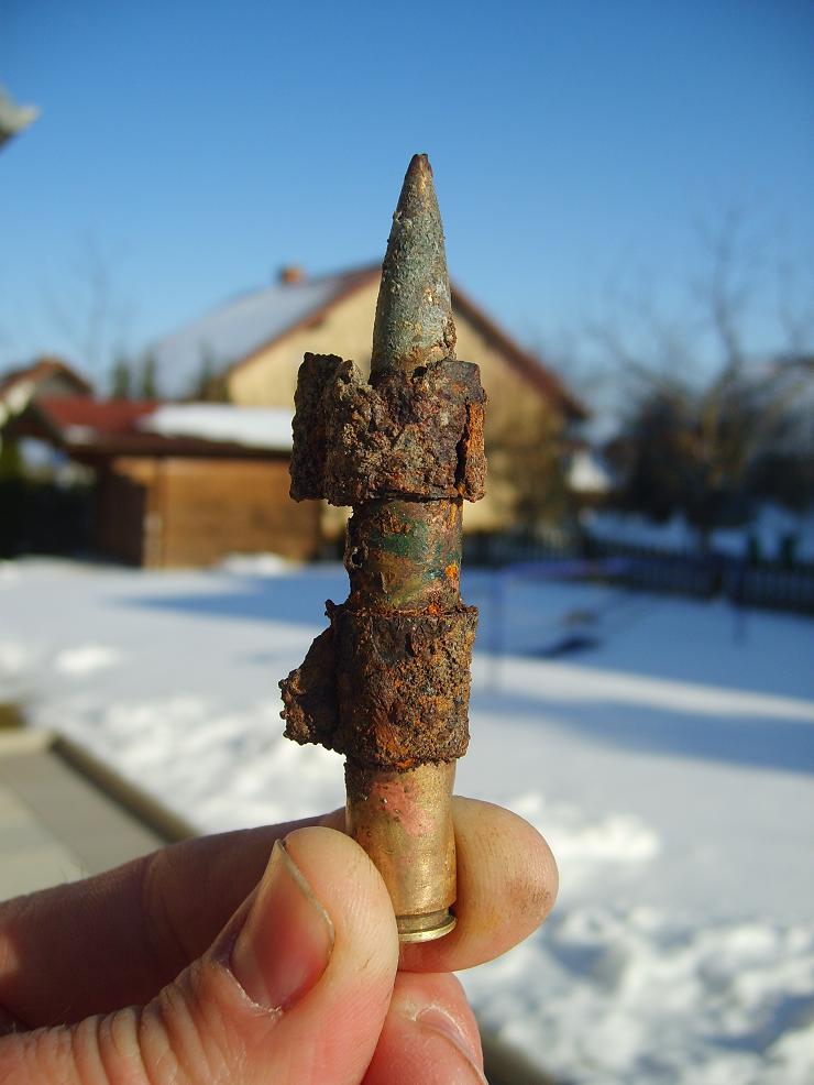 Да, на немецкое звено не очень похоже. Возможно кто то надел на немецкий патрон звено от американской рассыпухи. Патрон нашёл мой свояк у себя в огороде при посадке деревьев. До этого там же был найден затвор от Лебеля. На месте новостройки во время войны были немецкие позиции. Десять километров западнее американцы форсировали Рейн. Перед постройкой дома, на участке работали сапёры.:smile_9: