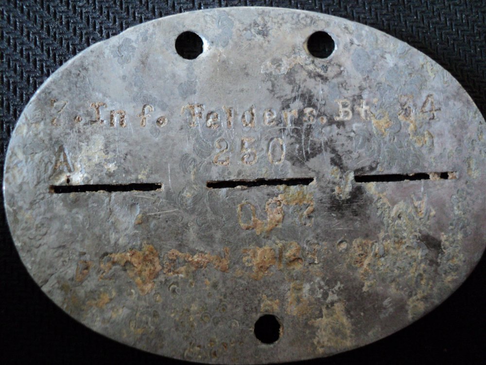 7 kompanie 34 infanterie feldersatz bataillon 7 рота 34 полевого учебного пехотного батальона 250 номер жетона А-2 группа крови