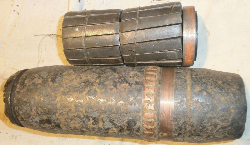 А на фото несработавший снаряд, если есть и нарезки на пояске + начинка? Или просто для фото подобрали разные части?