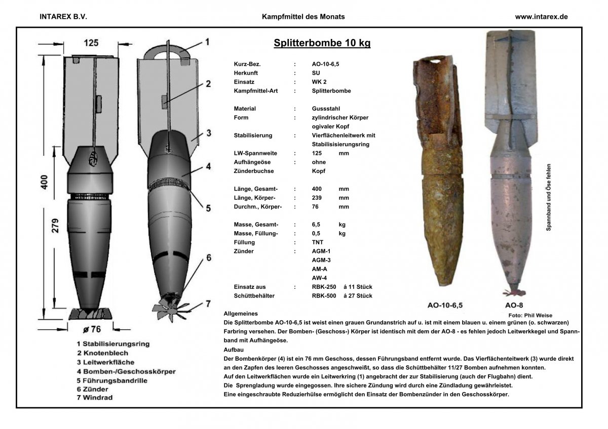 Ничего общего с АРТИЛЛЕРИЙСКИМИ взрывателями. По-мимо артиллерии есть еще и авиация! В голове установлен авиационный взрыватель мгновенного действия АМ-А без ветрянки (уже опасно!), шедший к осколочным АВИАЦИОННЫМ БОМБАМ! Находка - авиационна бомба, изготовленная из бракованного 76-мм снаряда. На шестом фото ТС лично мне видно (???) следы от сварки хвостовика. На фото, что ниже думаю Вы узнаете свой "артиллерийский снаряд" в ином обличии.