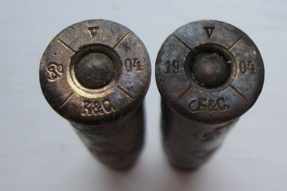 Решил освежить тему, выложив фотографии своего вышибного 8х50 R Man. Может и было ? Такой - первый раз - без насечки на шляпке. Заряд, как и у всех вышибных, войлочные пыжи, порох, прикрытые медной (?) чашечкой , на мастике. Клеймо - ,,B MF 1915 IV ,, .