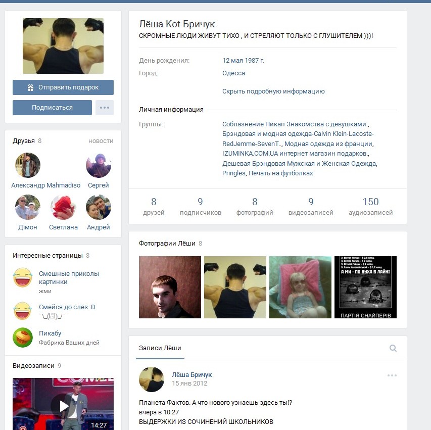 Она старая,он давно на ней не появлялся...и скорее всего забыл пароль,а так бы уже фото давно удалил бы...с 2012 года нет никаких обновлений...